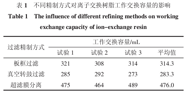 2.5不同精制方式對后續(xù)離子交換樹脂工作交換容量的影響